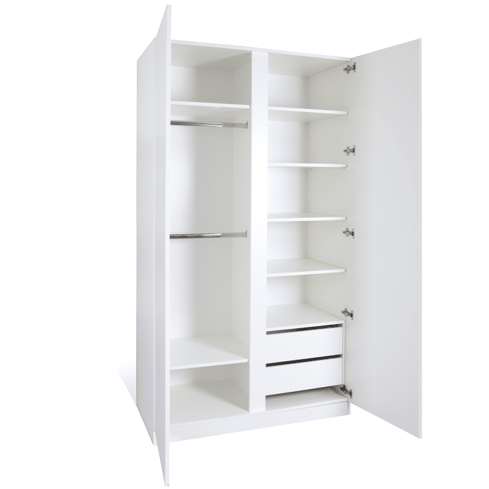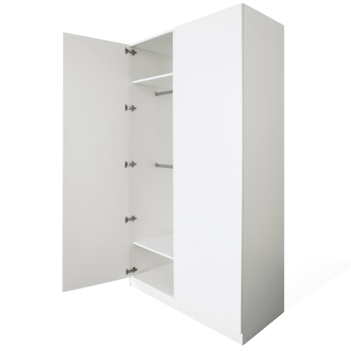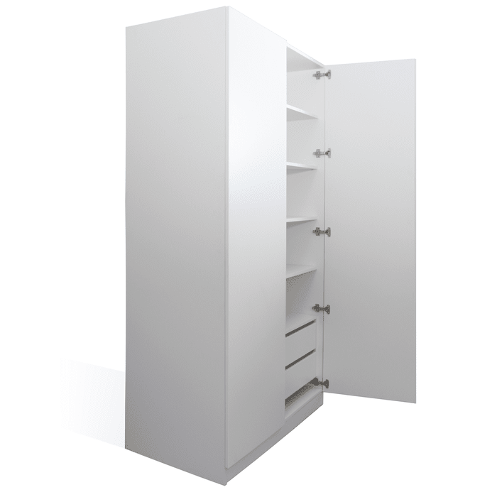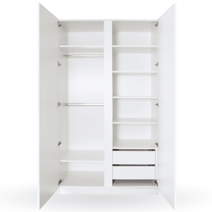 Отсутствие ручек придает этому предмету мебели современный и изысканный вид. В гардеробе есть места для вешалок, ящики для обуви и отделения для одежды. Идеальный выбор для современного складского помещения.