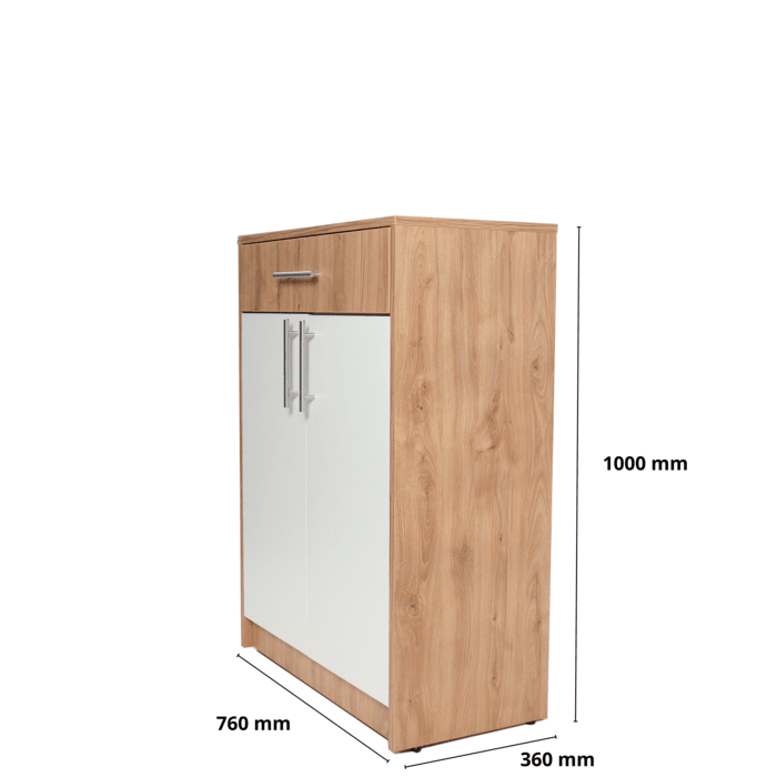 Обувной Шкаф от ANDRA — идеальное решение для поддержания порядка в доме и придания элегантного вида прихожей. В вашем распоряжении 3 полки для обуви и дополнительный ящик для вещей, которые вы хотите иметь под рукой, таких как: ключи, документы, кошелек.