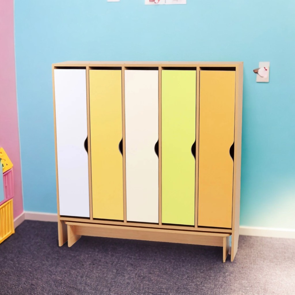 Шкафчик «Радуга» с 5 отделениями и встроенной скамейкой